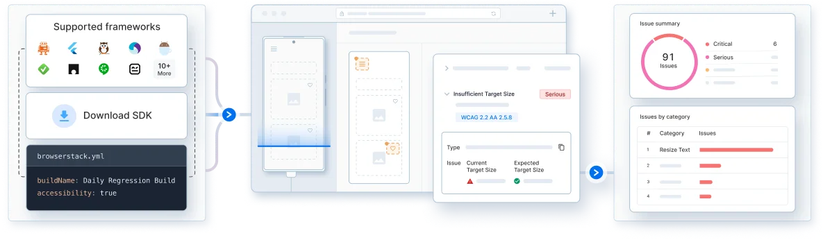 Install the SDK, enable a single code flag, and seamlessly integrate app accessibility testing into your functional tests.